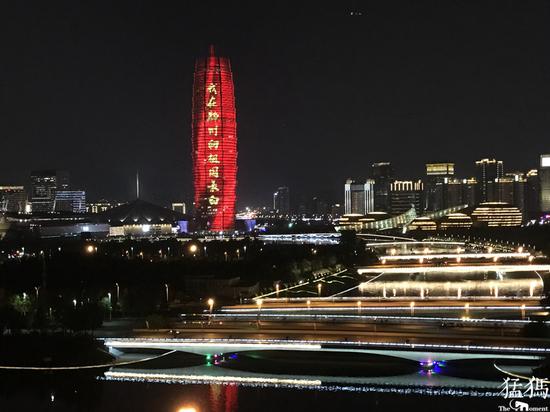 原標(biāo)題:我愛你,中國!鄭州地標(biāo)同時(shí)點(diǎn)亮 共同向祖國深情告白