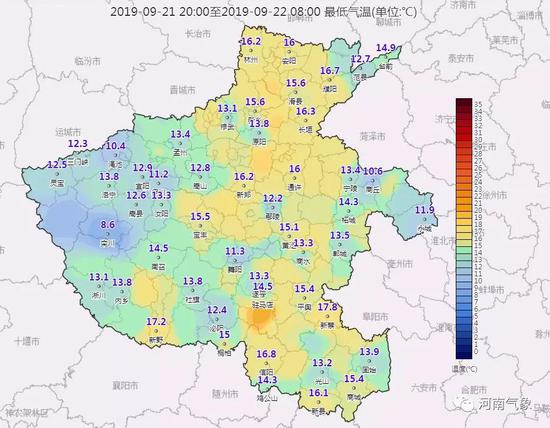 尤其洛陽欒川,昨夜的最低氣溫只有8.6℃,商丘10.6℃