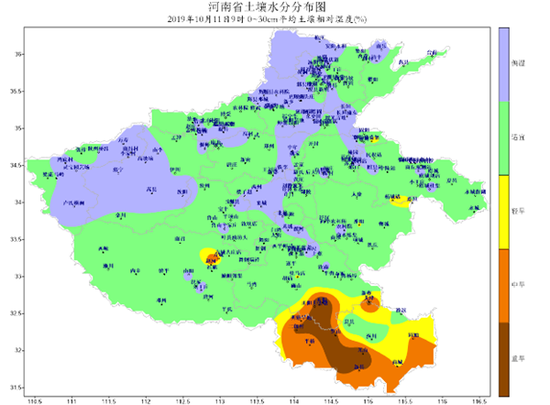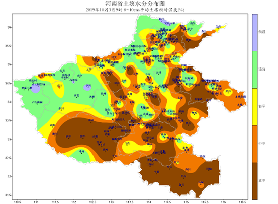 此外,10月中旬后冬小麥播種工作將大面積展開,近期的降水為麥播奠定了較好的底墑基礎,對秋播工作較為有利。但目前豫西、豫北部分地區土壤偏濕,對機械化作業有一定影響。