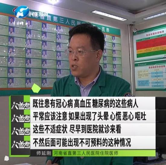 現(xiàn)在天氣驟冷,早晚溫差大,是心腦血管疾病的多發(fā)時(shí)期,醫(yī)生提醒既往患有冠心病、高血壓、糖尿病等疾病的患者要格外注意,如果身體出現(xiàn)心慌、頭暈、惡心、嘔吐等癥狀,一定要及時(shí)就醫(yī)。