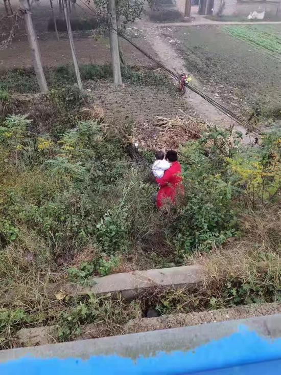 原來(lái)這名紅衣婦女帶著小孩大早上的不顧雨后田間小路泥濘,鉆過(guò)高速邊溝設(shè)置的護(hù)欄網(wǎng),爬到高速公路上是因等候一輛從鄭州路過(guò)的貨車(chē)捎回來(lái)的快遞包裹!