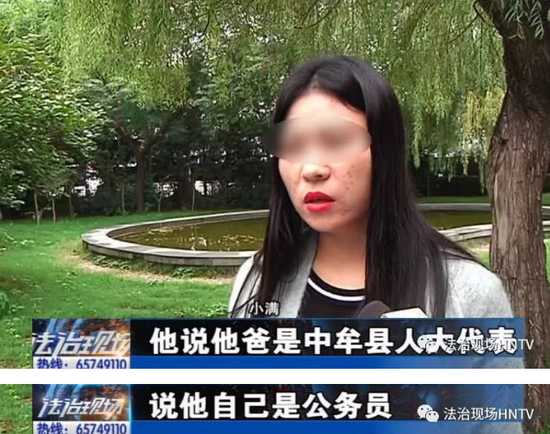 這位“男友”聲稱,自己是中牟縣某政府單位的領導。條件不錯,人又很好,小滿覺得愛情幸運之神正朝自己走來。沉浸在甜蜜之中的小滿,對“公務員男友”感覺急劇上升,對他提出的要求也是盡量滿足。
