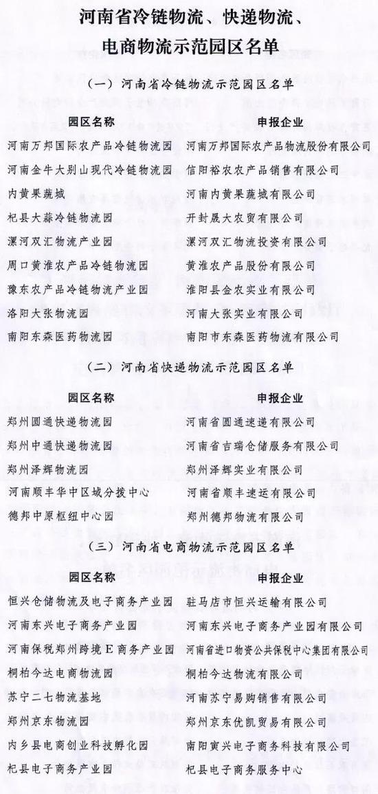 原標題:《快來看!河南冷鏈、快遞、電商物流示范園區名單公布》
