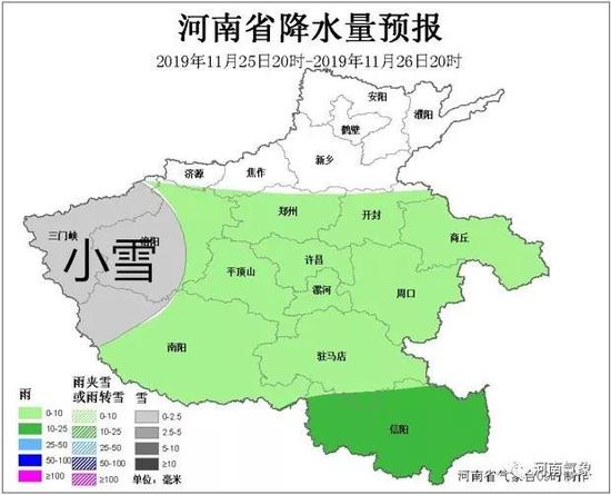 26日,全省陰天,淮河以南有小到中雨,黃淮之間有小雨或雨夾雪,其中西部有小雪。