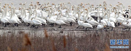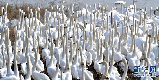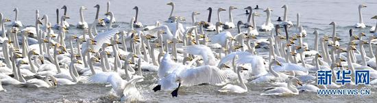 河南三門峽是白天鵝在我國的重要越冬地,每年10月下旬,白天鵝從西伯利亞等地遷徙至三門峽黃河濕地越冬,種群數量在12月中旬趨于穩定,2月下旬至3月下旬離開濕地陸續北遷,在此停留約5個月。新華網發(高山岳 攝)