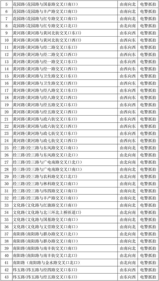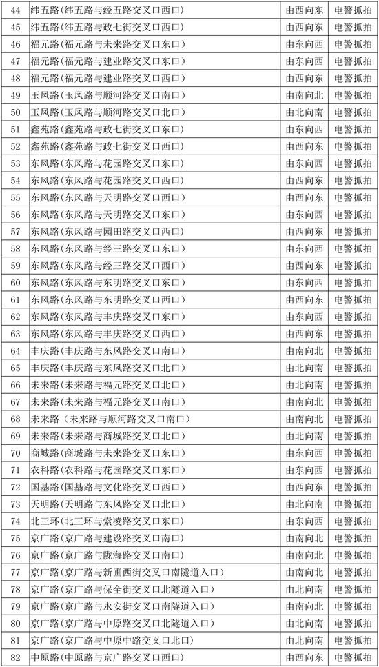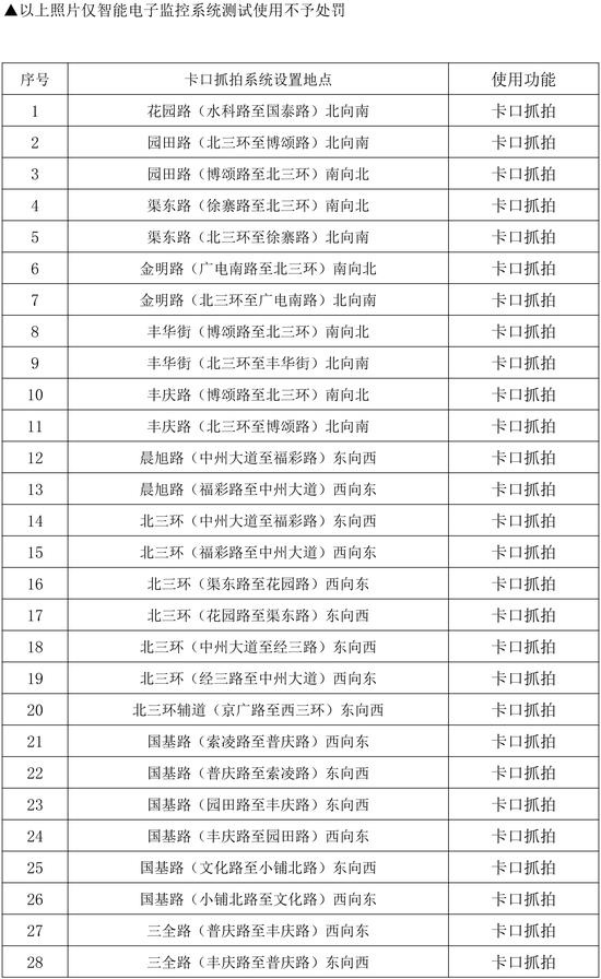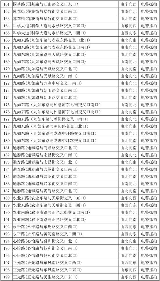為配合全市交通違法集中整治提升工作,強(qiáng)化城區(qū)道路交通秩序管理,提高科技化管理水平,鄭州市公安局交警支隊新增了一批智能電子監(jiān)控設(shè)備,用于城區(qū)道路交通秩序的管理,本次新增設(shè)備為260套“電子警察抓拍系統(tǒng)”和54套“卡口抓拍系統(tǒng)”,日前這批智能電子監(jiān)控設(shè)備在經(jīng)過前期試運行后,將于2020年1月6日正式投入使用,現(xiàn)將具體點位向社會公示。