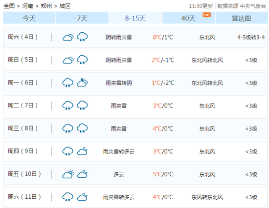 鄭州將出現(xiàn)-7℃低溫