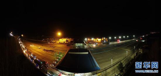 2020年1月1日0時,連霍高速豫皖收費站收費廣場,隨著曾經代表兩省的收費站銘牌移交,自2002年7月1日開通運營的連霍高速公路豫皖(皖豫)主線收費站實體站停止運行。新華網發(趙沖 攝)