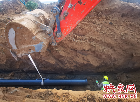 挖溝、排管、填埋,逐段施工,他們采取“一條龍”作業,至當天下午17:30分,已鋪設直徑0.4米的供水管道25根共計150米。