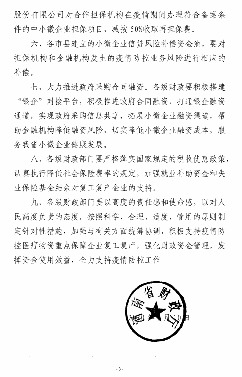 《關于強化疫情防控重點保障企業資金支持的通知》(豫財金[2020]7號)