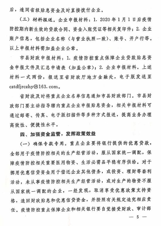 對享受人民銀行專項再貸款支持的企業,中央財政和省財政還會給予貼息支持:在人民銀行專項再貸款支持金融機構提供優惠利率信貸支持的基礎上,中央財政按企業實際獲得貸款利率的50%進行貼息,重點保障企業實際融資成本最高不超過1.6%。在落實國家貼息政策的基礎上,省財政統籌資金給予25%的貼息支持。貼息期限不超過1年。