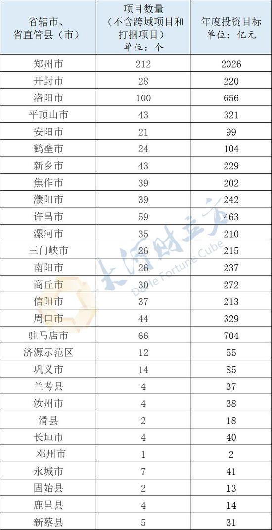 各省轄市和省直管縣(市)項(xiàng)目數(shù)量和年度投資目標(biāo)分別為(不含跨域項(xiàng)目和打捆項(xiàng)目):