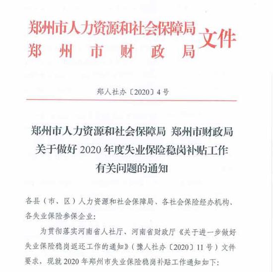 據“鄭州人社·社保卡”公眾號發布消息,鄭州市人力資源和社會保障局下發《關于做好2020年度失業保險穩崗補貼工作有關問題的通知》。