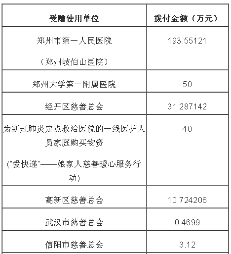 本次《公告》涉及鄭州慈善總會使用社會捐贈款第四批891.002458萬元、物資價值348.267191萬元情況,其中,支持鄭州市疫情防控購買所需物資保障使用30.85萬元,支持醫院、縣(市、區)、開發區和相關單位疫情防控178萬元,合計208.85萬元;根據捐贈人意愿定向使用社會捐贈款682.152458萬元;根據捐贈人定向和社會需求使用物資價值348.267191萬元。