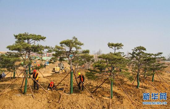 3月5日,河南省南陽月季大觀園西園,中建七局安裝公司工人在施工作業。