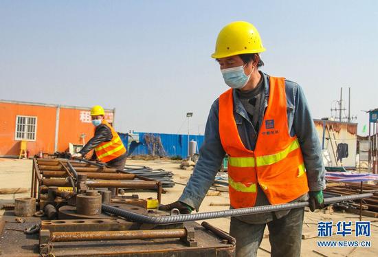 近日,在做好疫情防控前提下,南陽市重點建設項目有序復工,工程建設穩步推進。新華網發(高嵩 攝)
