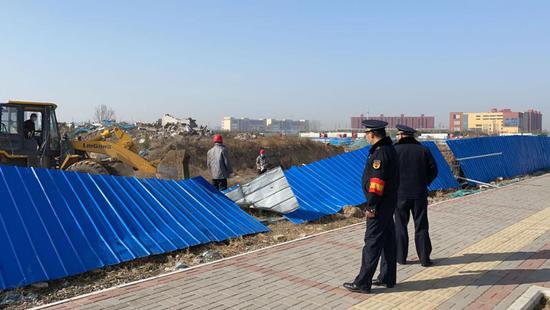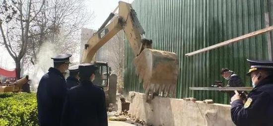 鄭州市城市管理執法支隊聯合各區(管委會)執法部門組織對全市違法施工圍擋開展集中拆除行動。3月11日,共出動執法人員201人次,車輛53臺次,調用大型機械2臺,對中原區、金水區、高新區、經開區、惠濟區等14處大型違法設置的圍擋進行了拆除,拆除面積達到4710平方米。