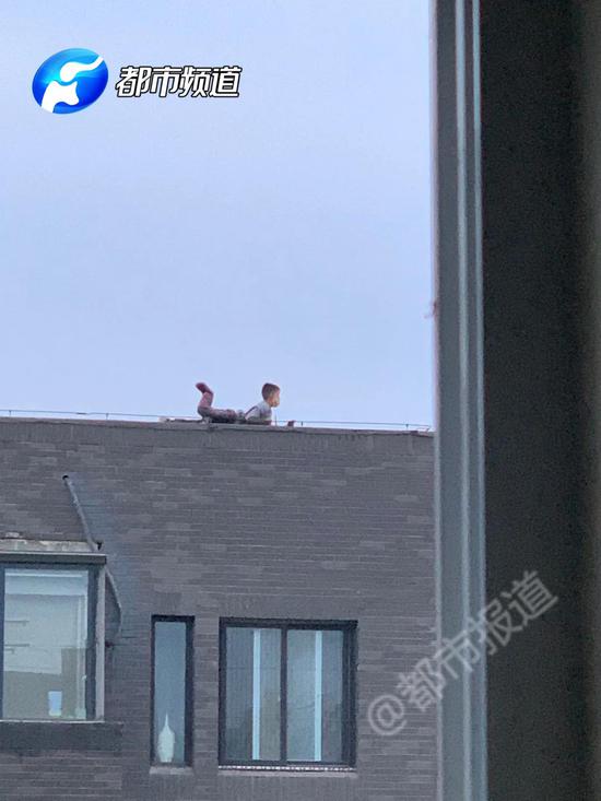 7層樓頂邊沿趴著一個孩子