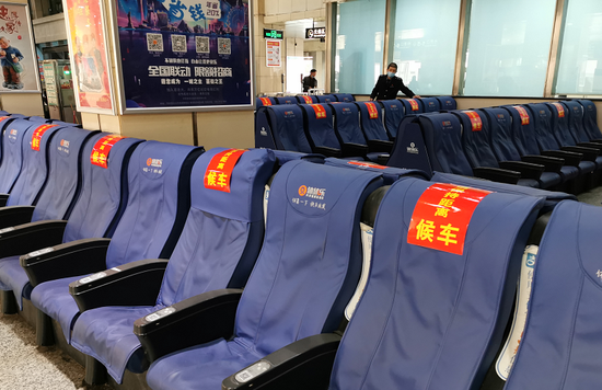 記者看到,在中心站候車廳的座椅上,粘貼了旅客隔離候車標識,流動服務工作人員引導旅客分散就座候車及快速乘車。而到站下車的旅客需掃描健康碼和行程碼,掃碼通過后進行體溫檢測,旅客體溫檢測合格后,方可出站。