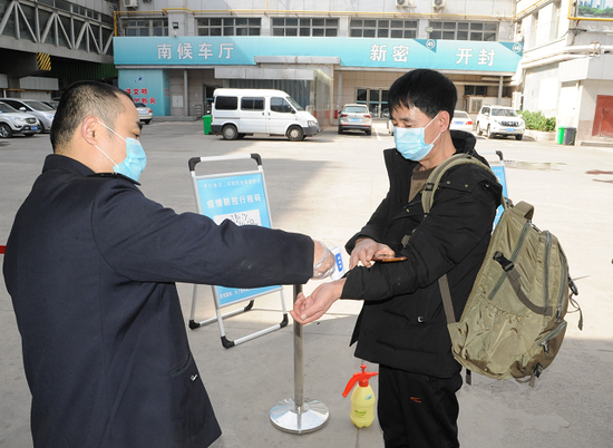 “今天恢復客運班線第一天,好多旅客還不知道,所以首日客流比較少。今天也就發了兩班車。”鄭州汽車客運北站黨支部書記張紅告訴記者,疫情好轉但尚未結束,目前車站在日常安檢的基礎上,旅客進站時實行“兩掃一測”(掃健康碼和行程碼、測量體溫)的“雙碼”進站流程,特別重點強化對入境人員檢查與防控要求,旅客測量體溫正常才能進站。車輛運營過程中,所有乘客全程必須佩戴口罩,減少交流。同時還會對營運車輛每間隔6小時全面消殺一次,車內配備消毒劑,車廂后兩排設置應急隔離區。