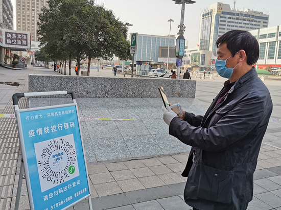 隨后,記者又來到鄭州汽車中心站前廣場,乘車旅客需要分別掃描健康碼和行程碼,通過后,由工作人員指導旅客進行無接觸網絡購票。進站前,旅客需進行紅外體溫檢測,體溫合格后,可憑身份證刷臉進站。
