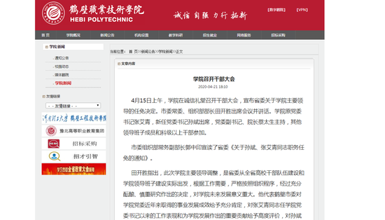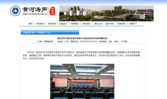 黃河水利職業技術學院:宣布省委關于學校黨委書記任職調整決定