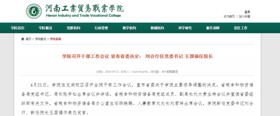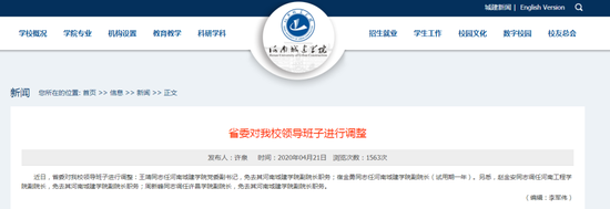 河南城建學院:省委對學校領導班子進行調整