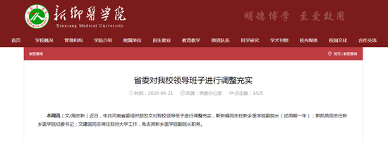 新鄉醫學院:省委對學校領導班子進行調整充實