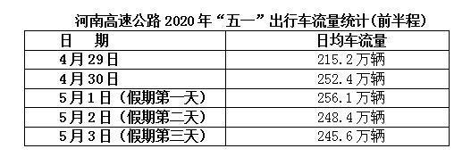 [今年“五一”出行特點]一是錯峰出行意識明顯。受高速公路免費通行影響,“五一”假期提前出行的車輛較多,提前出行車流量增多。從4月30日的車流量252.4萬輛可以看出,與4月29日環比增加了37.2萬輛,增長17.3%,與去年同期174.2萬輛相比,增加了78.2萬輛,同比增長44.9%,也就是說,今年“五一”假期群眾避開“五一”假期首日出行高峰的特點非常明顯,錯峰出行意識明顯。二是今年“五一”出行車流量持續高位運行。從4月30日到5月3日假期前半程車流量統計情況來看,每天車流量都是在250萬輛上下波動,“五一”假期首日最高峰與出行車流量最低的5月3日相比,僅高出10.5萬輛,與平常車流量相比持續高位運行。三是返程高峰與貨運大車流疊加,返程通行壓力會非常大。受“五一”假期過后5月6日高速公路開始正常收費影響,貨運車輛為了趕上目前高速公路免費通行政策的紅利,預計“五一”假期最后兩天車流量依然持續高位運行,特別是假期最后一天貨運大車流與返程高峰疊加,通行壓力會非常大。河南高速交警在全力護航保通的同時提前發布返程預警,提示廣大群眾切記提前返程,錯峰返程,避開假期最后一天下午返程高峰,特別是假期最后一天下午17時-19時返程最高峰,錯峰返程更順暢。