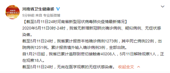 原標題:《截至5月11日24時河南省新型冠狀病毒肺炎疫情最新情況》