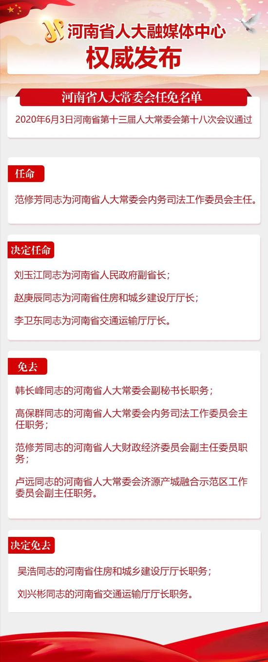 原題:《權威發布:河南省十三屆人大常委會第十八次會議任免名單》