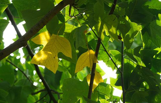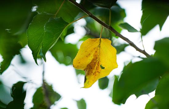 2020年8月11日,雖然天氣仍然悶熱,但畢竟已是立秋后的時節,一些樹葉已經開始變黃,報告著秋的消息。鄭報全媒體記者 馬健 圖