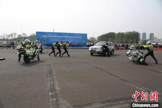 圖為騎手警務駕駛“大比武”。鄭州市交警支隊供圖