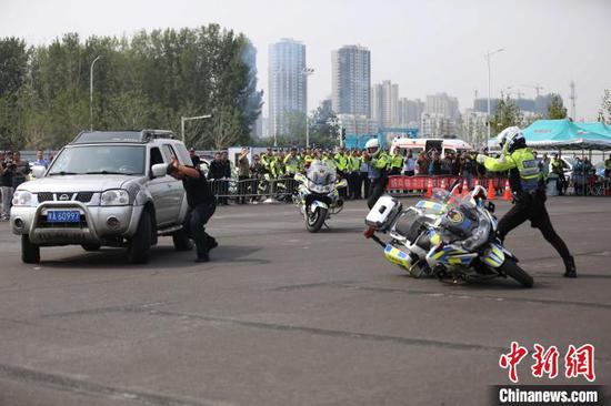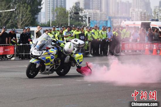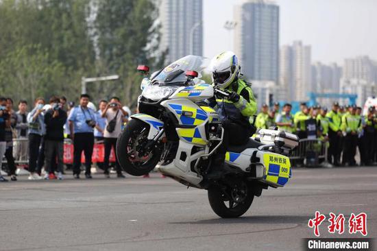 圖為騎手在賽場大秀車技。鄭州市交警支隊供圖