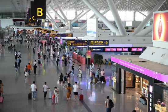 2020年國慶黃金周恰逢中秋佳節,旅客乘坐飛機外出旅游探親將迎來高峰。鄭州機場雙節期間單日航班運行架次將突破580架次,日均客運量7萬人次以上,達到去年同期近9成水平,航空客運市場步入快速恢復軌道。