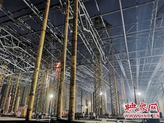 映象網(wǎng)訊(記者 阮海峰 文/圖 通訊員 侯曉鵬)11月5日19時,鄭州南站站房工程主站房鋼結(jié)構(gòu)屋蓋第三區(qū)域鋼桁架精準落位,標志著鄭州南站主站房鋼結(jié)構(gòu)順利封頂,站房主體輪廓首次亮相。