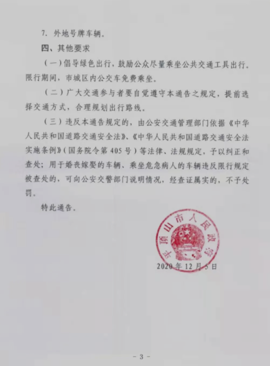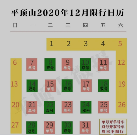 根據通告,限行時間為 2020年12月7日至2020年12月31日(不含法定節(jié)假日、雙休日),每日7時至21 時實施限行 。