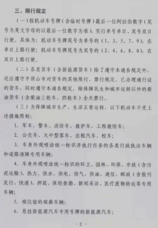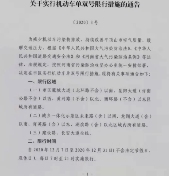 平頂山限行通知來啦