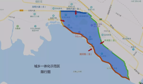 城鄉(xiāng)一體化示范區(qū)未來路(含)以西、龍翔大道(含)以南、育英路(含)以東、湖濱路(含)以北區(qū)域內所有道路。