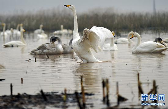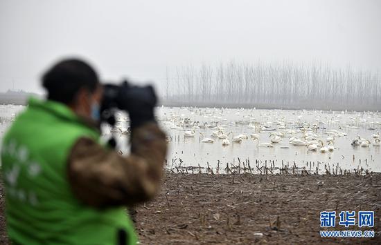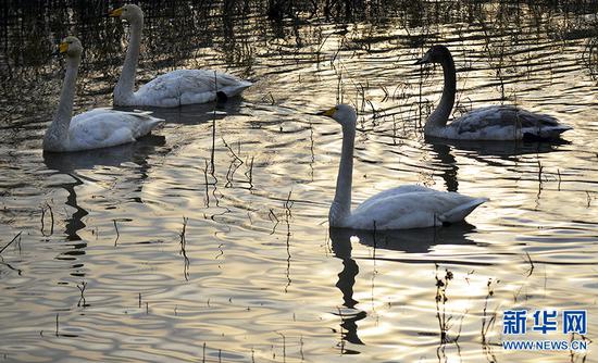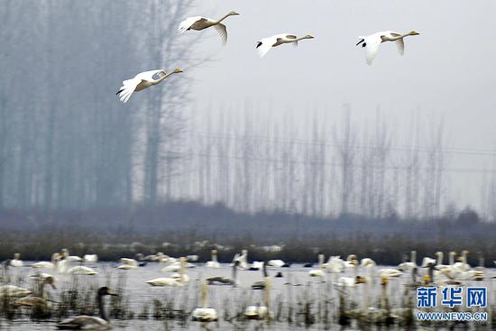 據介紹,隨著黃河生態環境的持續改善,黃河三門峽段吸引了越來越多的天鵝前來棲息越冬。目前,前來沿黃濕地棲息的天鵝越來越多,這些翩翩起舞的白色精靈讓古老的黃河煥發出勃勃生機,吸引了越來越多的游客前來感受黃河廊道人鳥和諧共處的景觀。新華網發(范作言/文 王克偉/攝)