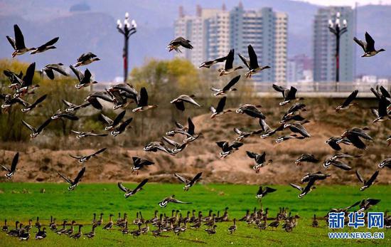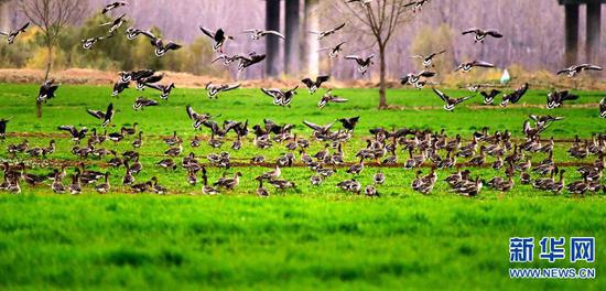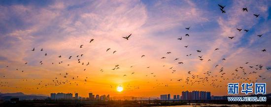 近年來,洛陽市深入踐行“綠水青山就是金山銀山”的發展理念,全面開展陸渾湖濕地生態系統修復工作,濕地動植物種類與數量持續增長,實現濕地資源的可持續利用。如今,陸渾湖國家濕地公園已經成為人民群眾擁抱自然、盡享生態福利的打卡地。人們不僅可以在公園里休閑觀光,也可以在新修的旅游步道、生態棧道、親水棧道上漫步游玩。新建的2個觀鳥臺和改建的1個濱河公園觀鳥亭給攝影愛好者和游客提供了觀測鳥類的好去處。天藍了,水清了,空氣潔凈了,植物種類增多了,鳥類聚居了,游客紛至沓來,陸渾成為水天一色、人水和諧的天然畫卷。新華網發(高山岳 羅孝民 王博 攝)