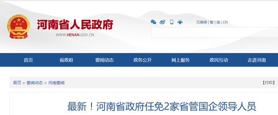 原標(biāo)題:《最新!河南省政府任免2家省管國企領(lǐng)導(dǎo)人員》