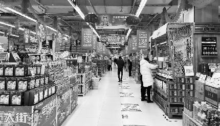 在一家大型超市內,張燈結彩的紅色掛飾透著年味