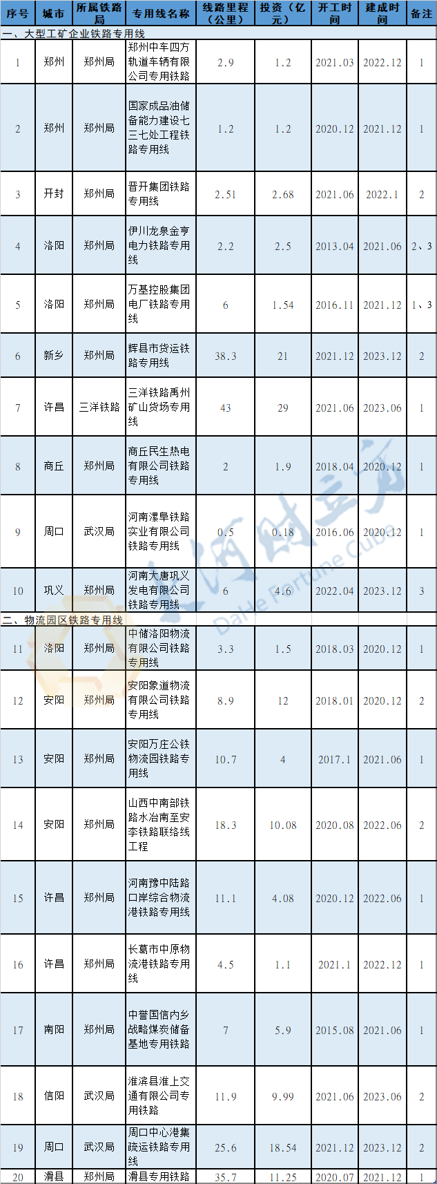 注:備注欄中,1代表該項目已納入《交通運輸部等九部門貫徹落實國務院辦公廳〈推進運輸結構調整三年行動計劃(2018-2020年)〉的通知》,2代表該項目已納入國家發改委等五部門印發的《關于加快推進鐵路專用線建設的指導意見》,3代表環評批復時要求新建鐵路專用線。