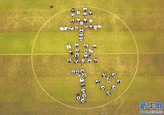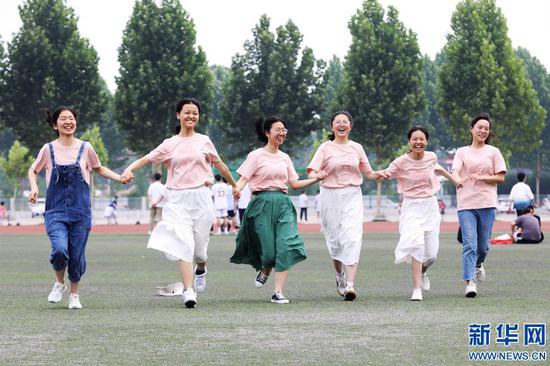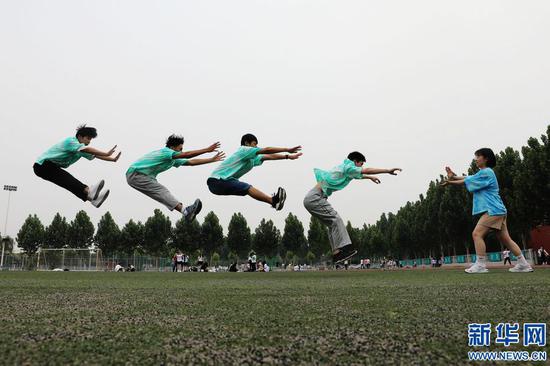 高考過后,溫縣一中的高三畢業(yè)生在校園里拍攝各種創(chuàng)意畢業(yè)照,為青春歲月留下美好瞬間。新華網(wǎng)發(fā) (徐宏星 攝)