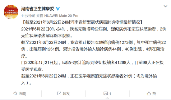 [截至2021年6月22日24時河南省新型冠狀病毒肺炎疫情最新情況]