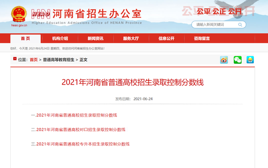 來源:河南省招生辦公室官網