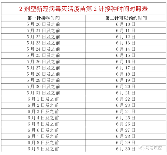 參照第二針接種時間對照表