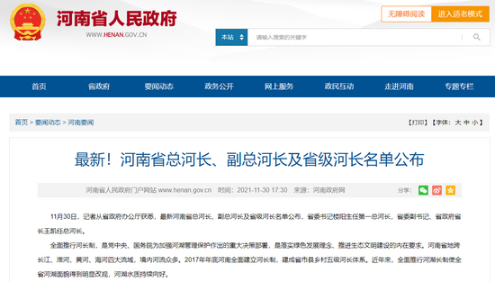 河南省總河長、副總河長及省級河長名單