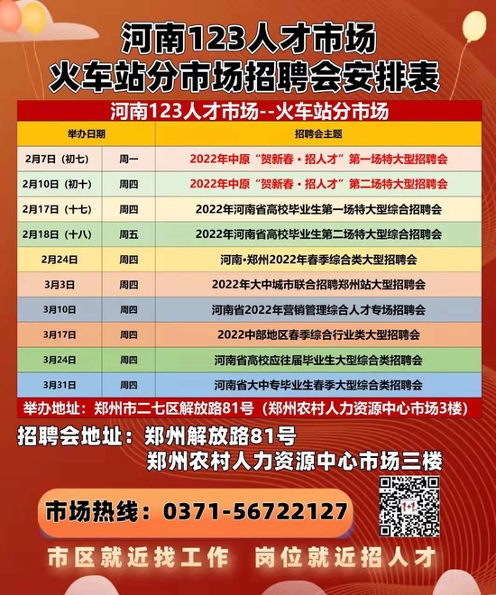 春節假期后的一兩個月是傳統用人旺季,根據工作安排,首場線下招聘活動是正月初七,也就是2月7號在鄭州農村人力資源市場舉辦的2022年中原“賀新春·招人才”特大型招聘會,預計屆時會出現求職小高峰。屈江賞:
